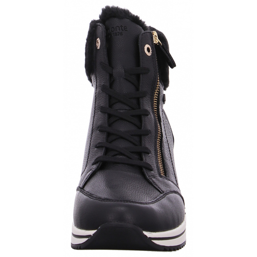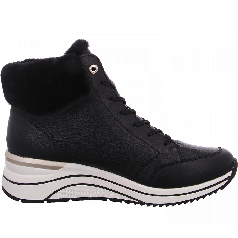 Die kalten Tage werden heiß! Diese asphaltschwarzen remonte Schnürstiefel für Damen aus Glattleder begleiten dich mit Style und bestem Laufkomfort durch die Saison. Eine Schnürung ergänzt den Reißverschluss und sorgt für Funktionalität und Komfort. Der Fellkragen am Schaft rundet das moderne Design perfekt ab. Dank der bewährten remonte Lite ´n Soft Technologie und der herausnehmbaren und gepolsterten Einlegesohle sind die Schnürstiefel federleicht und angenehm zu tragen. Der Schuh ist die perfekte Wahl für große Füße: Er ist in Extraweite geschnitten und in Übergrößen erhältlich. Das kuschelige und sehr warme Schurwoll-Futter und die bewährte remonteTEX-Technologie machen diesen Schnürstiefel zum optimalen Begleiter – perfekt für nasskalte Tage. Das heißt: Endlos schlendern ist überhaupt kein Problem!